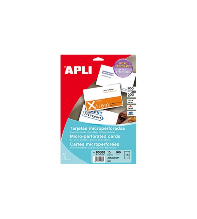 TARJETA DE VISITA APLI 10608 A4 90x50,8MM 200GR. MATE 10 HOJAS 100U. INK JET-LASER