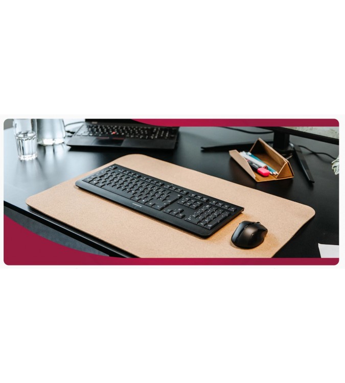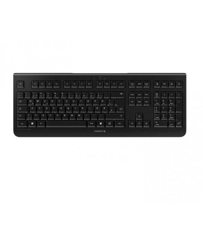 El CHERRY KW 3000 inalámbrico en tamaño completo con teclas direccionales y teclado numérico destaca por su diseño plano, sus teclas silenciosas y sus hasta 10 millones de accionamientos por tecla.
