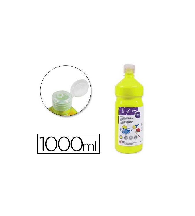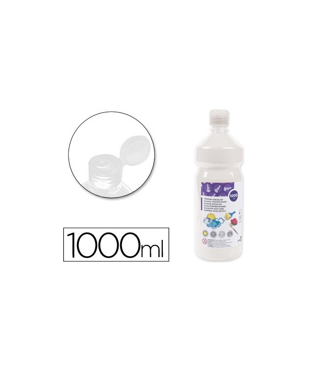 Témpera escolar lista para usar. Ideal para uso escolar. Adecuada a partirde los 3 años de edad. Super lavable. Con cierre de seguridad. Colores brillantes. 1000 ml. |