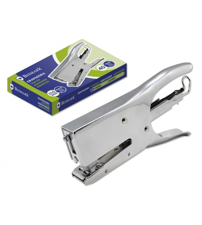 Grapadora de tenaza. Cromado. Grapa hasta 40 hojas. Grapa estandar 26/6, 24/8
