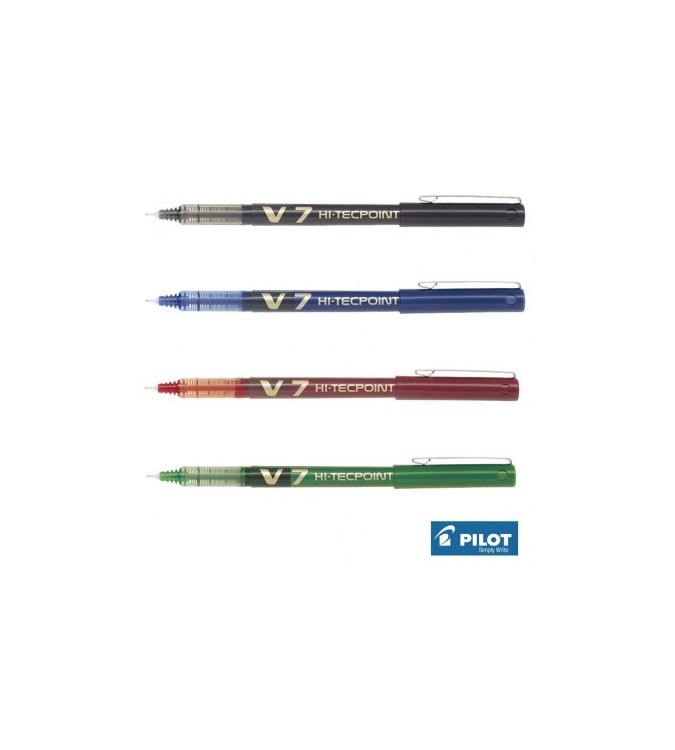 Tinta líquida. Diámetro de bola: 0,7 mm. Punta de aguja. Visor de tinta. Cuerpo del color de la tinta. Dispone del mecanismo de control de tinta vsystem exclusivo de pilot.