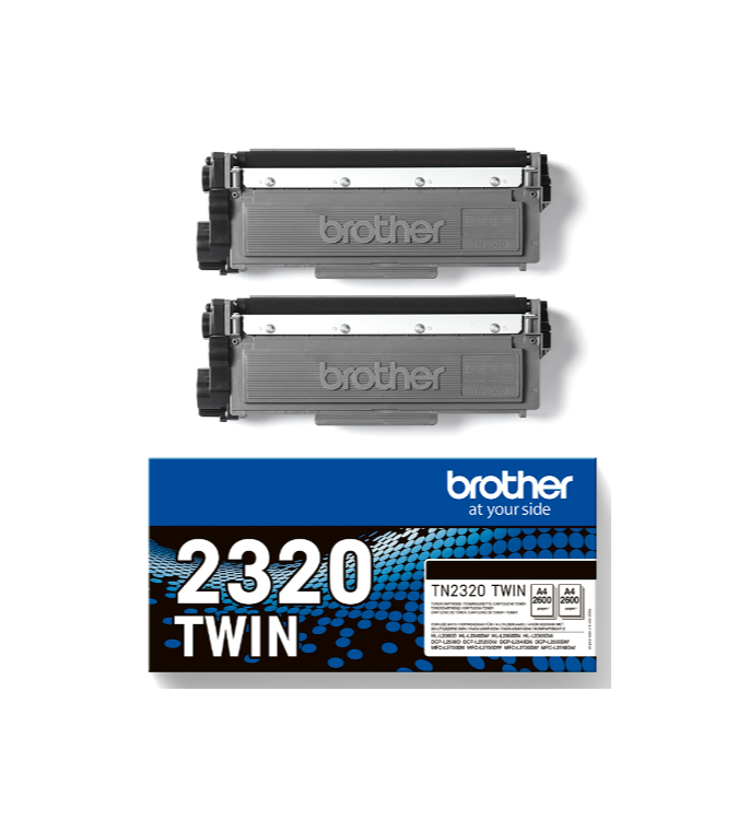 Diseñado específicamente para tu impresora, el pack de tóner original Brother TN2320TWIN incluye 2 cartuchos de tóner negro de larga duración, cada cartucho con una duración de hasta 2.600 páginas.