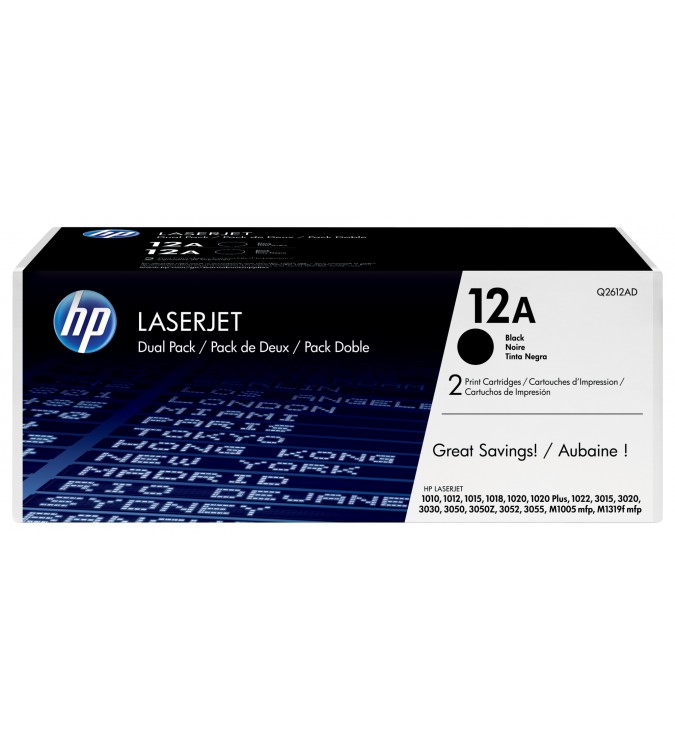 Toner Negro Q2612AD para LaserJet 1020/1022/1022 N/NW/3015/3015 AIO/3020 Pack de 2 - 2000 Pag Nº.DUAL PACK