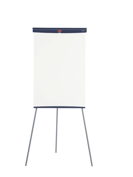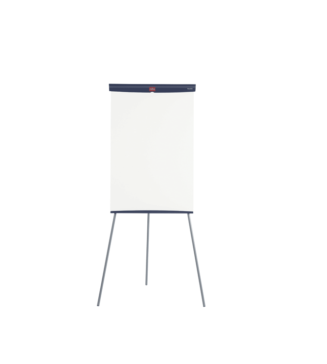 Atril para blocs de formato básico con superficie de escritura magnética de acero y base de trípode de altura regulable. Ideal para uso moderado.