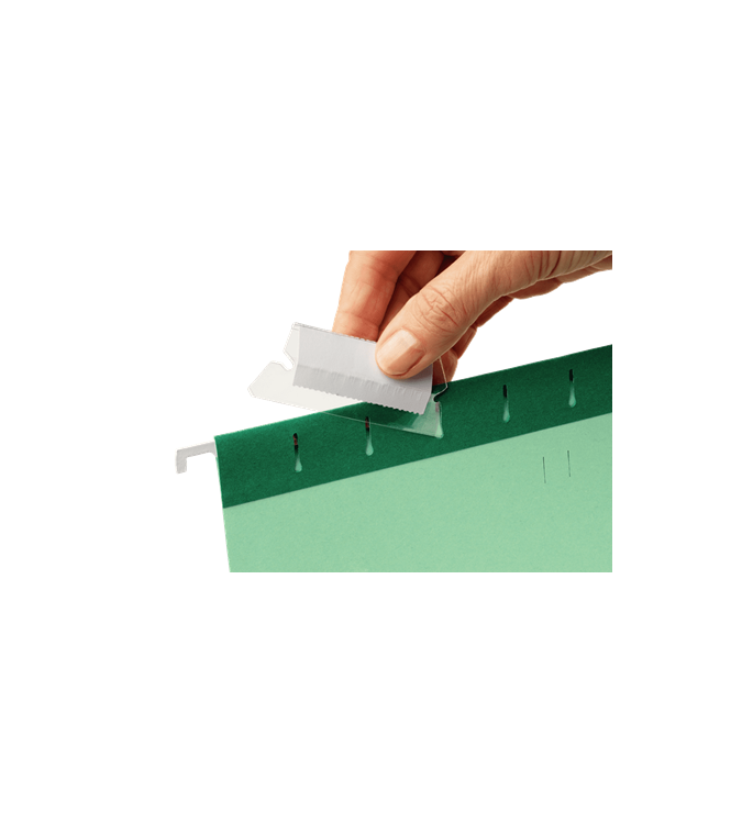 Visores transparentes de plástico de 5 cm de longitud con etiquetas de papel para todas las carpetas colgantes Esselte Classic.