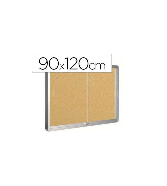 Con fondo de corcho, construida en aluminio anodizado. Puertas correderas de cristal de seguridad antirroturas de 5 mm de grosor y cerradura con 2 llaves. Provista de accesorios de fijación a la pared. Cantoneras redondeadas. Puerta de cristal. Fondo: 6 cm. |
